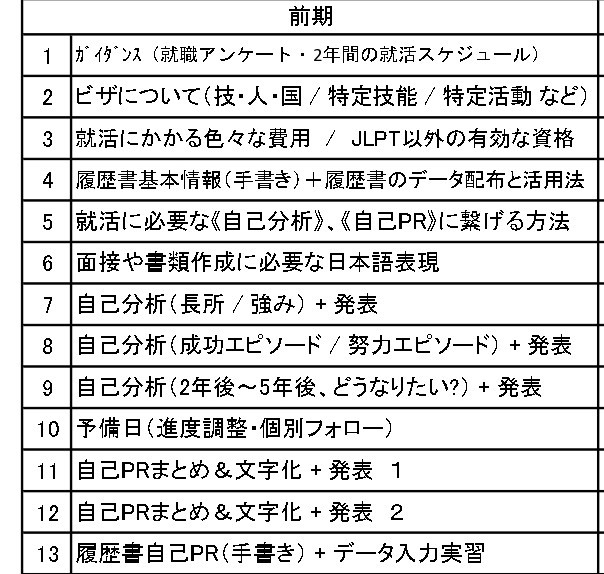 • 面接対策: 個人面接や、留学生にとって難易度の高いグループディスカッションの模擬練習を繰り返し行います。面接時の日本語の表現非言語コミュニケーション(態度、表情など)についてもフィードバックします。